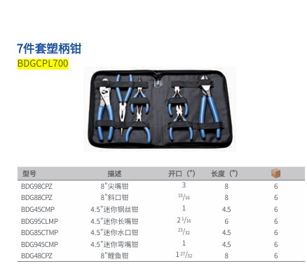 7-piece plastic handle pliers BDGCPL700