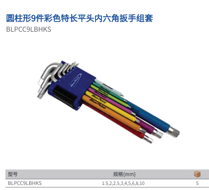 Blue Point 9-piece set of extra-long, colored flat-head hex wrenches BLPCC9LBHKS